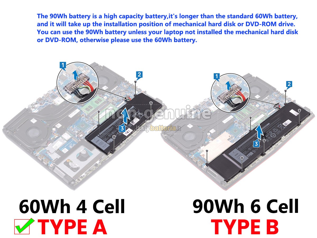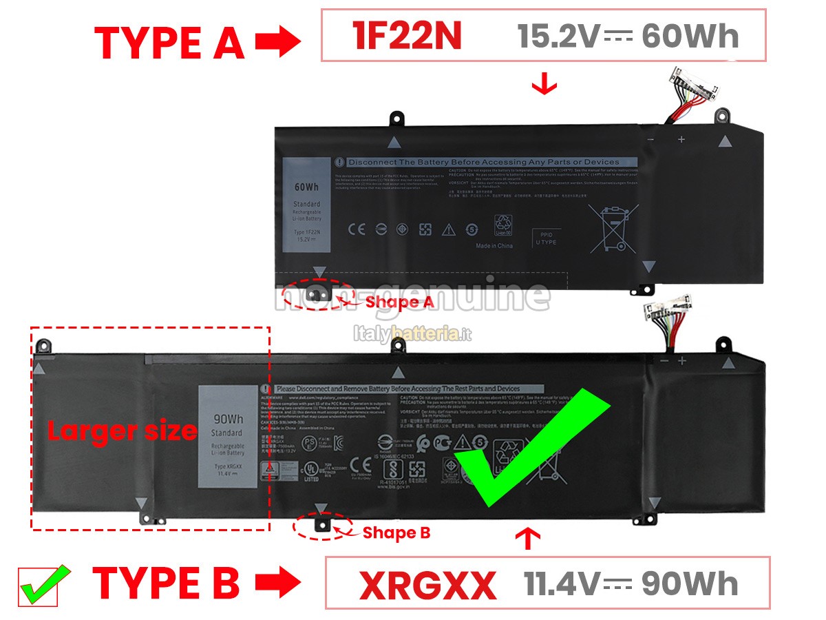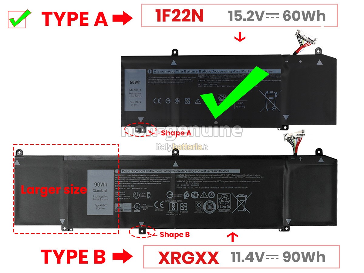 Con la copia 1: 1 in base alla dimensione originale della batteria originale, la batteria Dell Alienware M15 P79F sostitutiva è compatibile al 100% con la batteria originale.