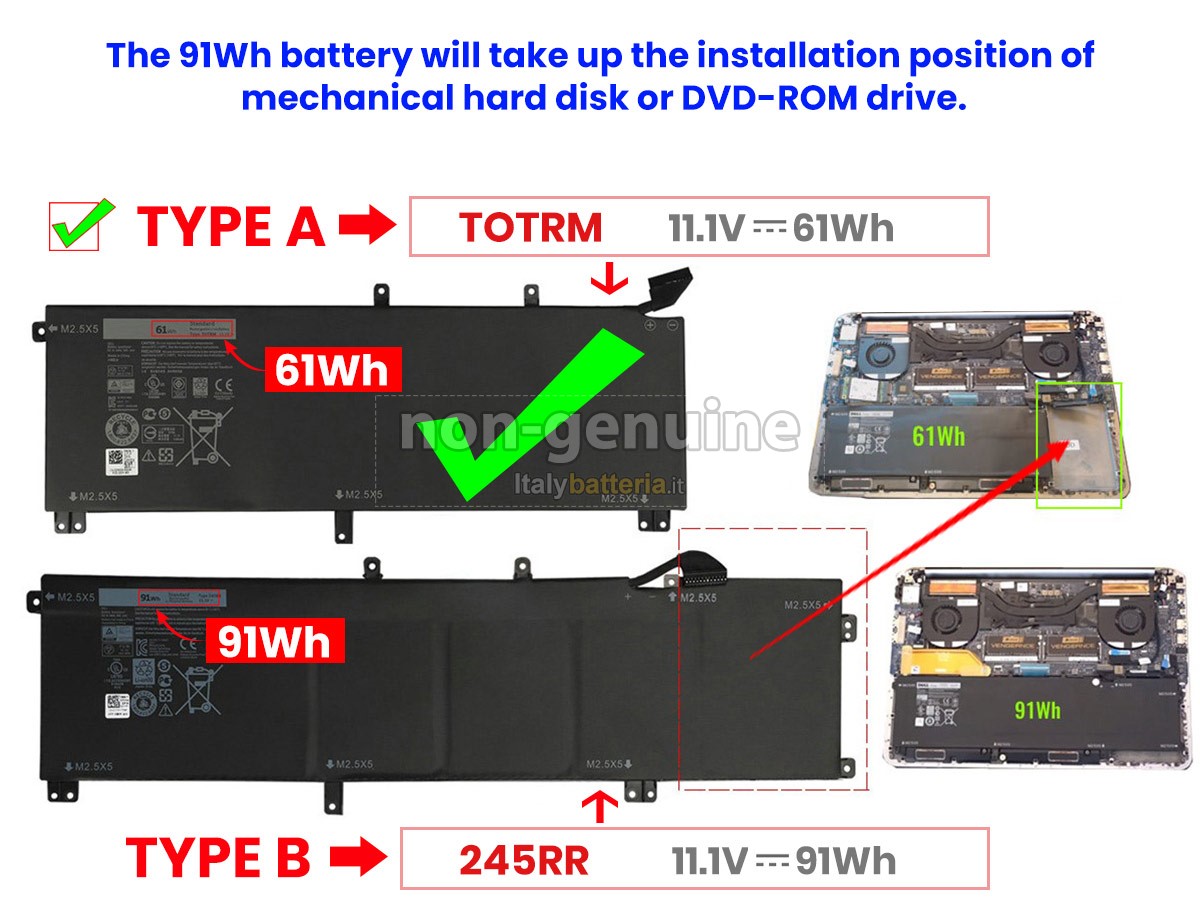 Con la copia 1: 1 in base alla dimensione originale della batteria originale, la batteria Dell H76MV sostitutiva è compatibile al 100% con la batteria originale.
