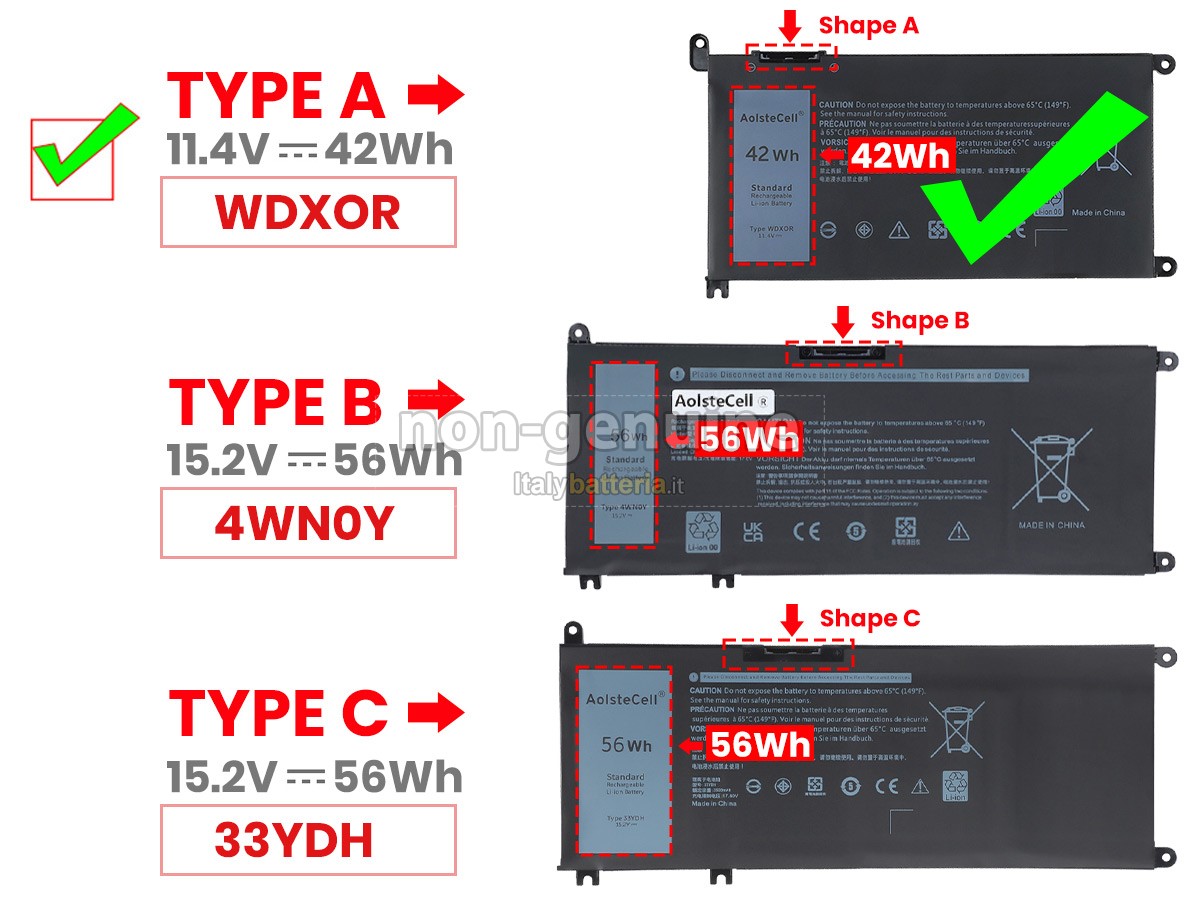 Con la copia 1: 1 in base alla dimensione originale della batteria originale, la batteria Dell Latitude 3310 sostitutiva è compatibile al 100% con la batteria originale.