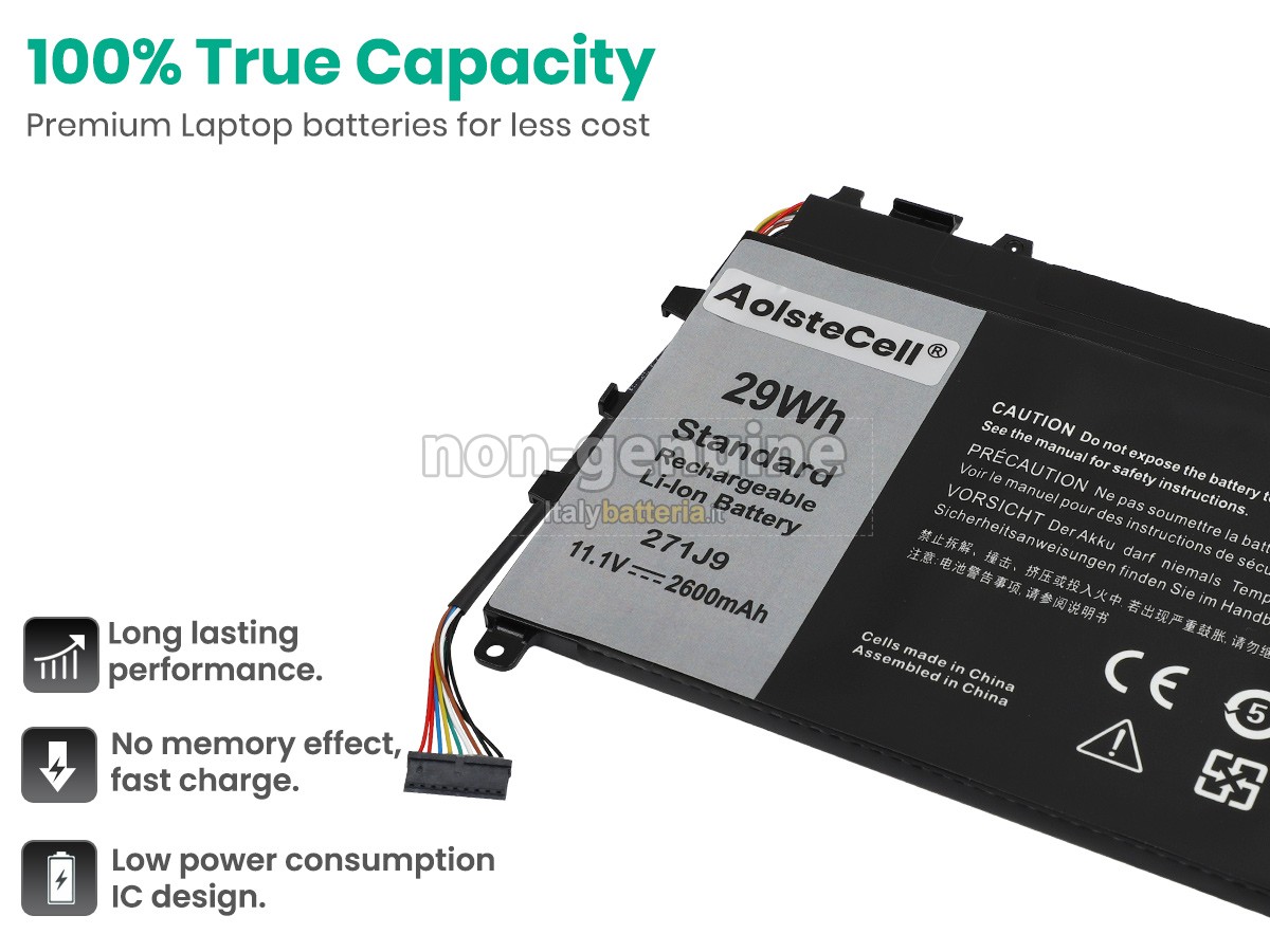 Con la copia 1: 1 in base alla dimensione originale della batteria originale, la batteria Dell Latitude 7350 sostitutiva è compatibile al 100% con la batteria originale.