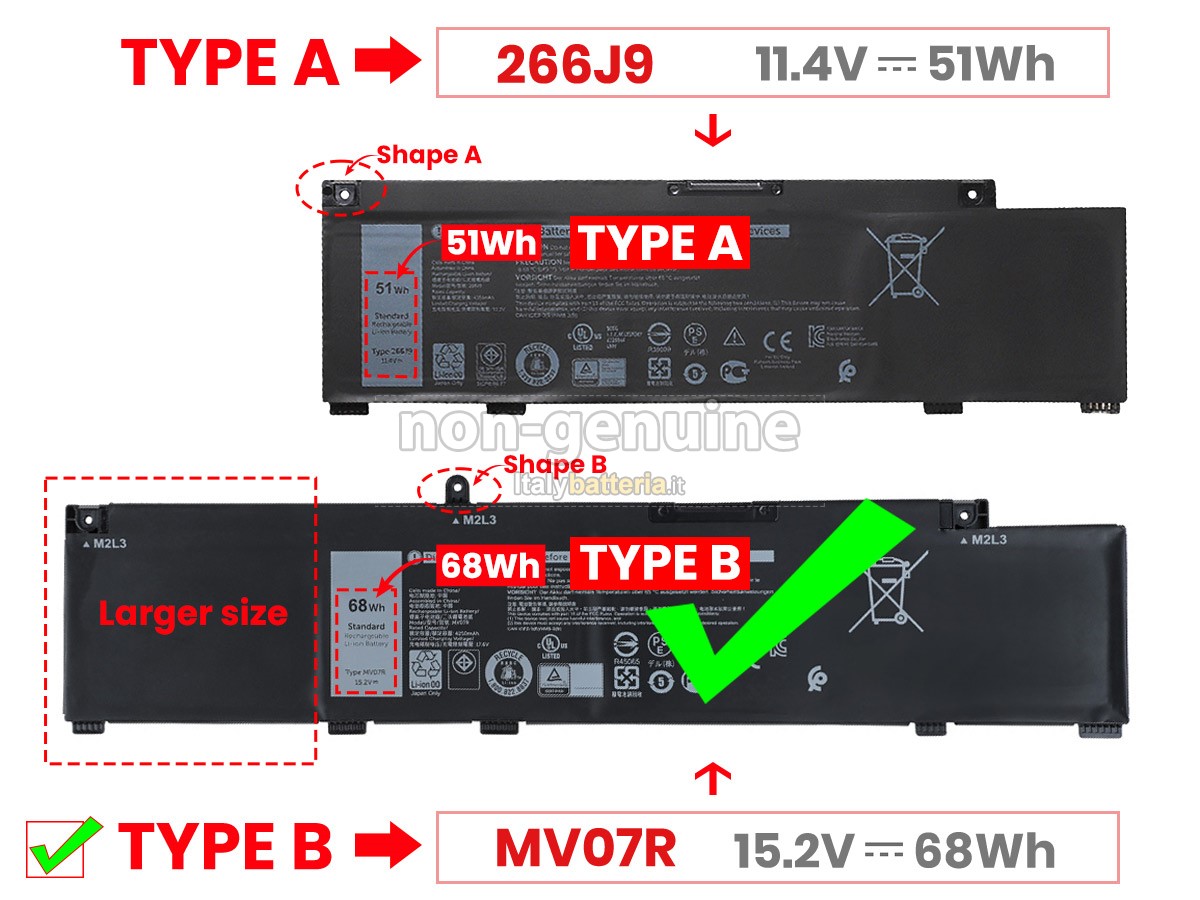 Con la copia 1: 1 in base alla dimensione originale della batteria originale, la batteria Dell P89F002 sostitutiva è compatibile al 100% con la batteria originale.