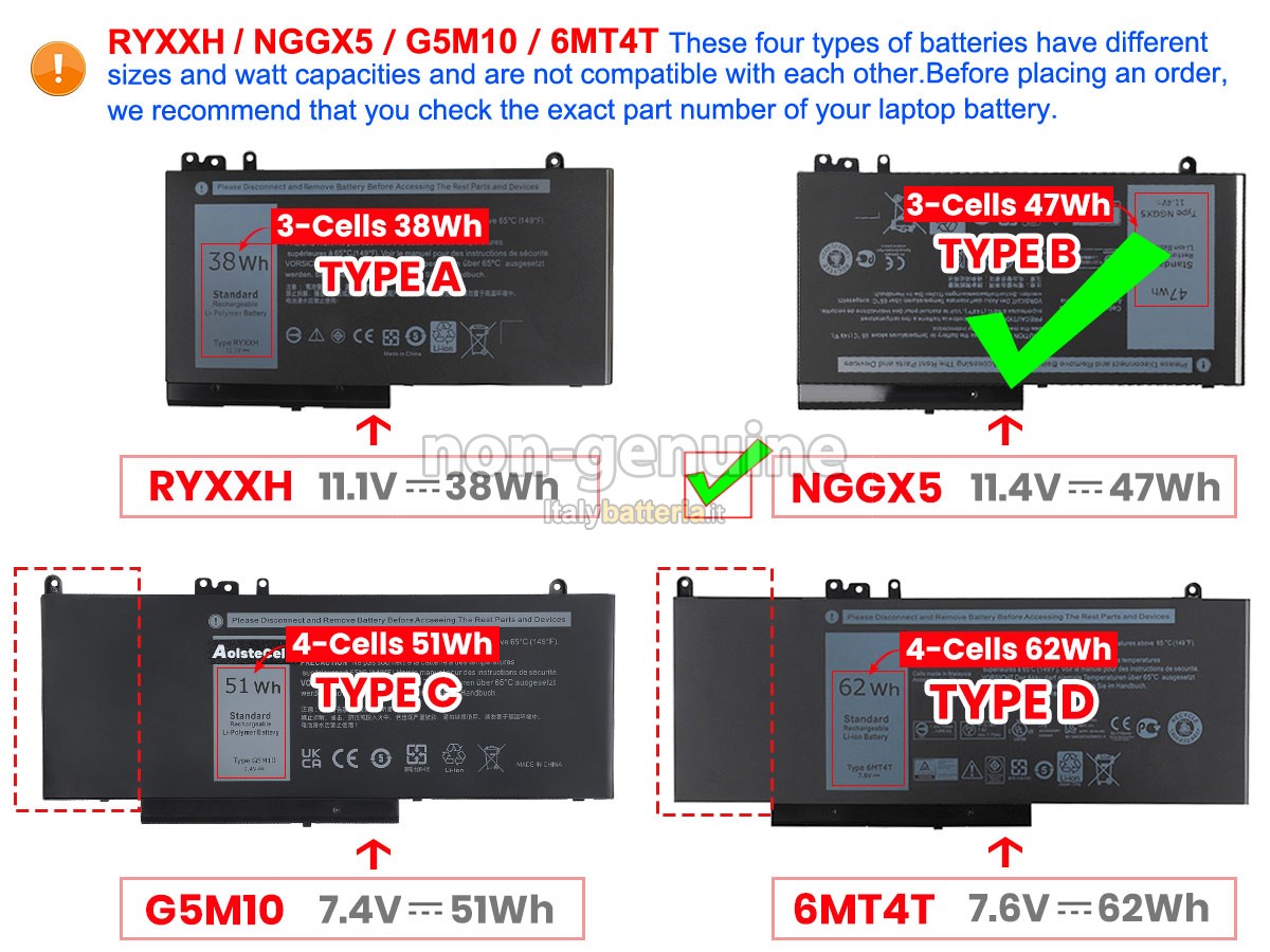 Con la copia 1: 1 in base alla dimensione originale della batteria originale, la batteria Dell ROTMP sostitutiva è compatibile al 100% con la batteria originale.