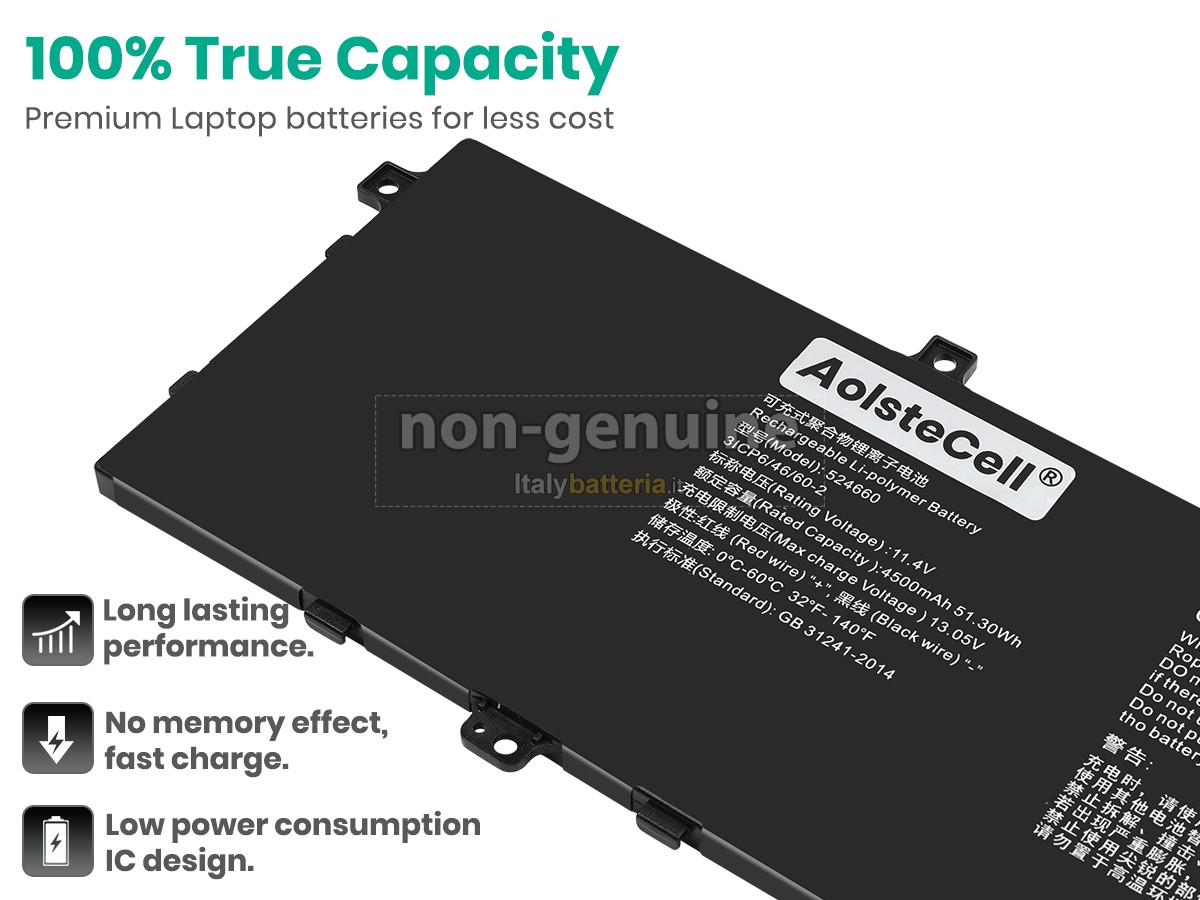 Con la copia 1: 1 in base alla dimensione originale della batteria originale, la batteria Hasee HAUS01 sostitutiva è compatibile al 100% con la batteria originale.