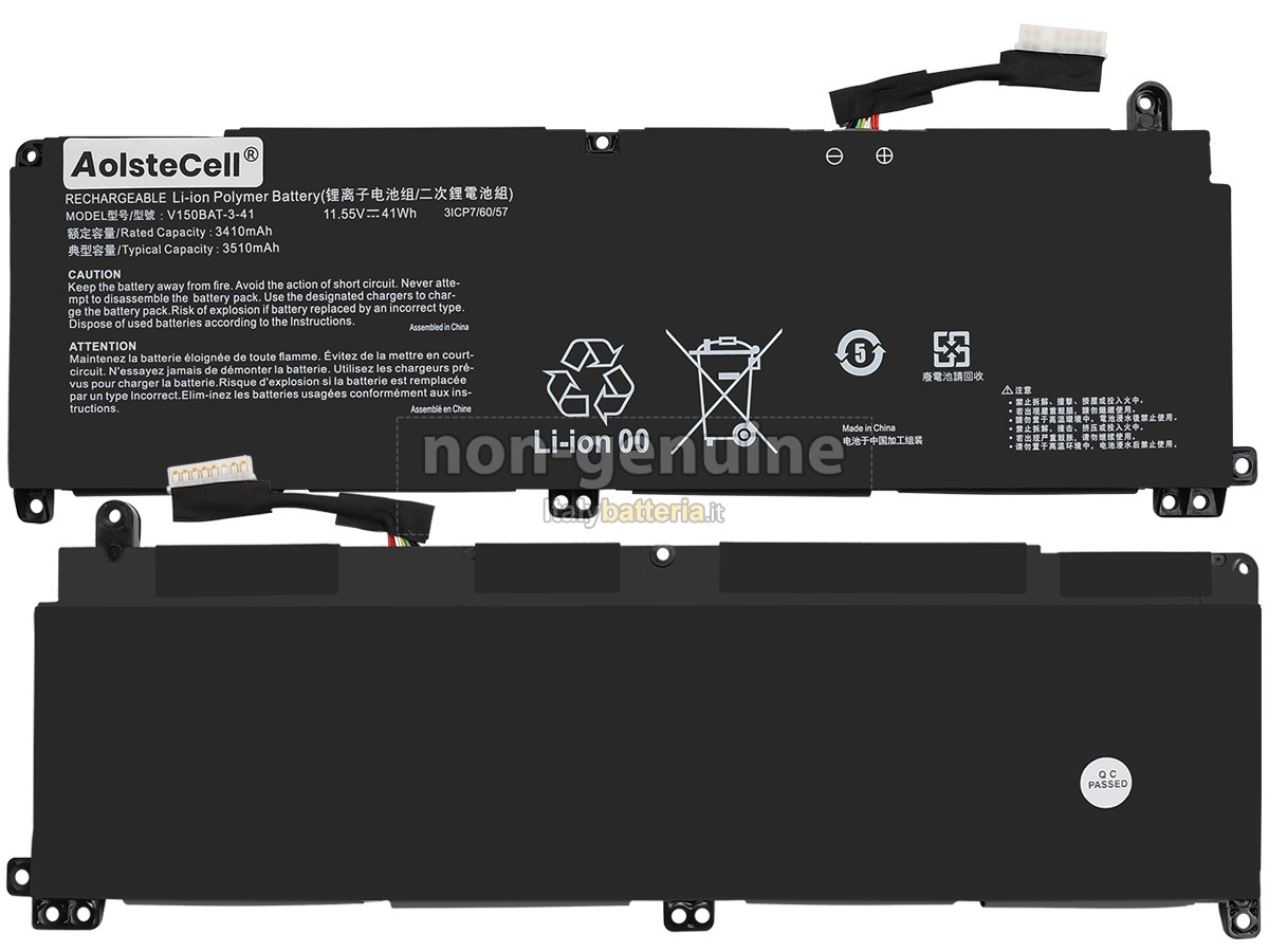 La batteria sostitutiva Hasee V150BAT-3-41 è progettata in scala 1:1 rispetto alla batteria originale, assicurando il 100% di compatibilità in termini di forma, dimensioni e prestazioni.