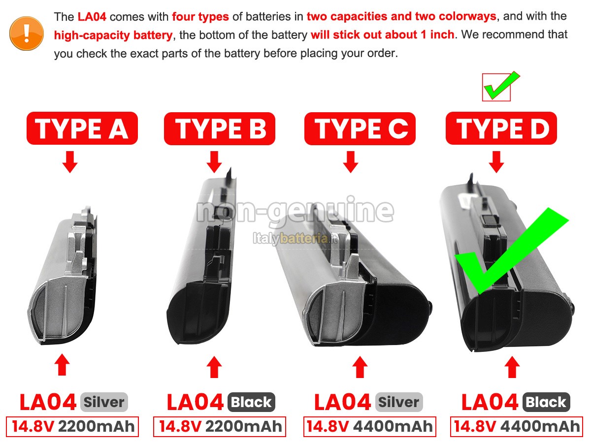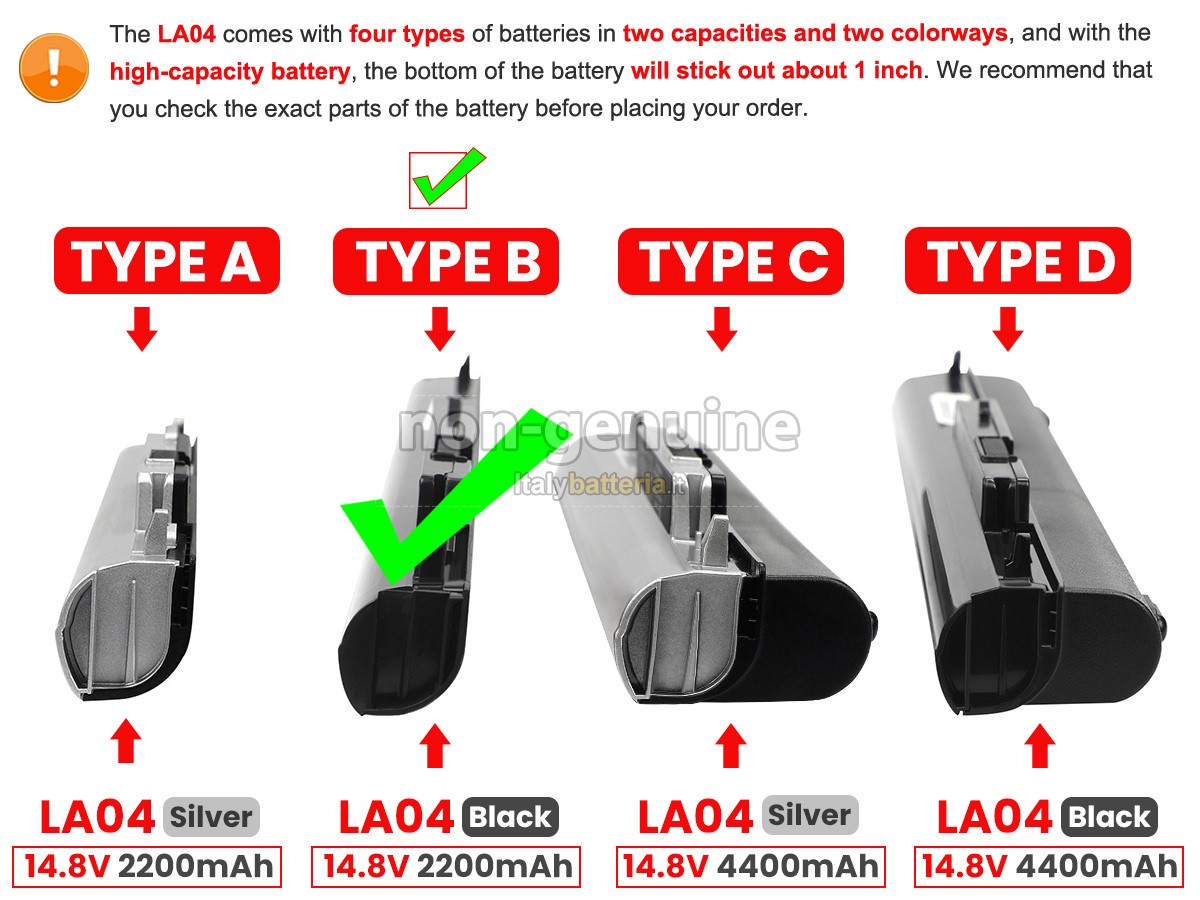 Con la copia 1: 1 in base alla dimensione originale della batteria originale, la batteria HP Pavilion 15-N203TU sostitutiva è compatibile al 100% con la batteria originale.