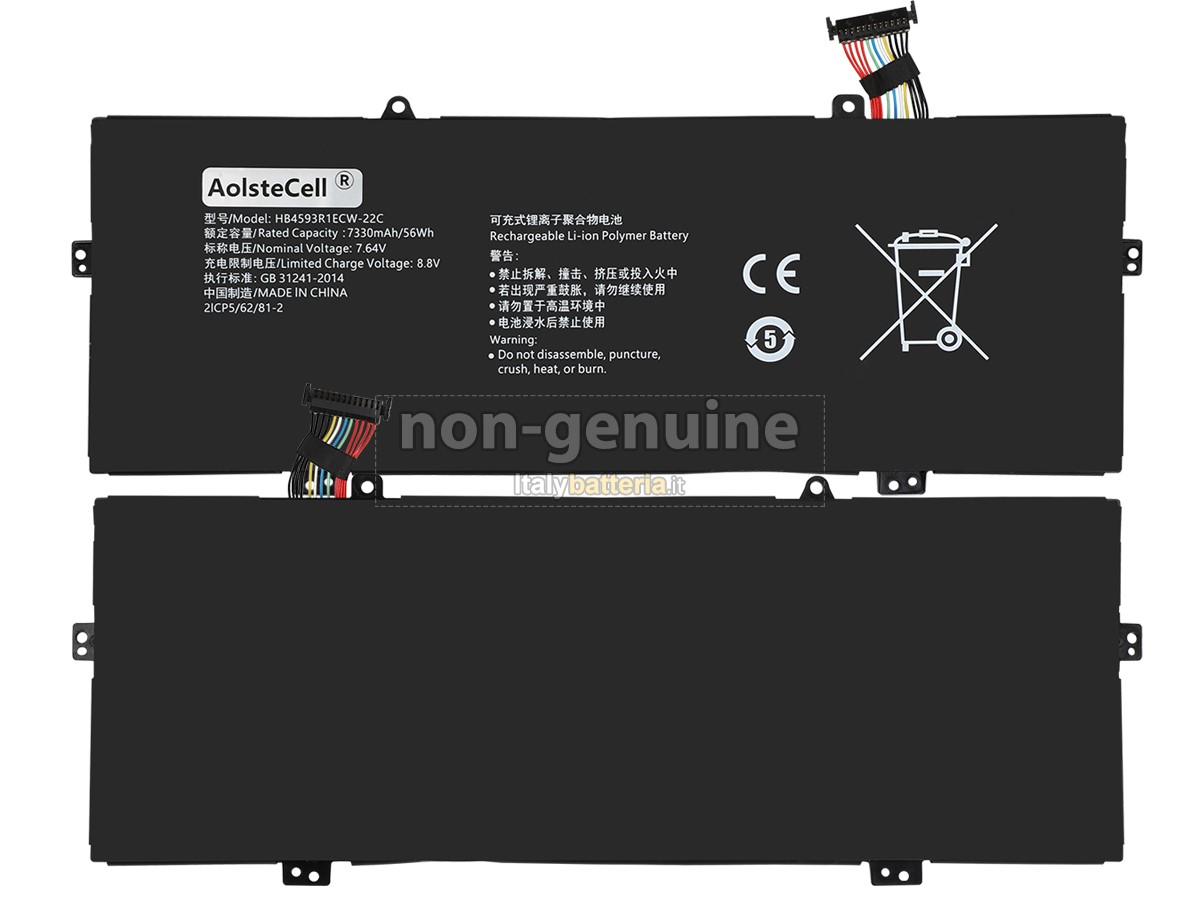Con la copia 1: 1 in base alla dimensione originale della batteria originale, la batteria Huawei HB4593R1ECW-22C sostitutiva è compatibile al 100% con la batteria originale.