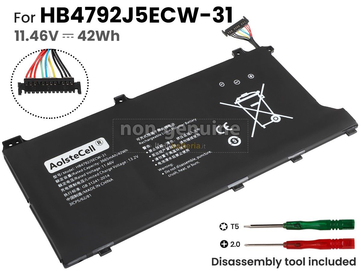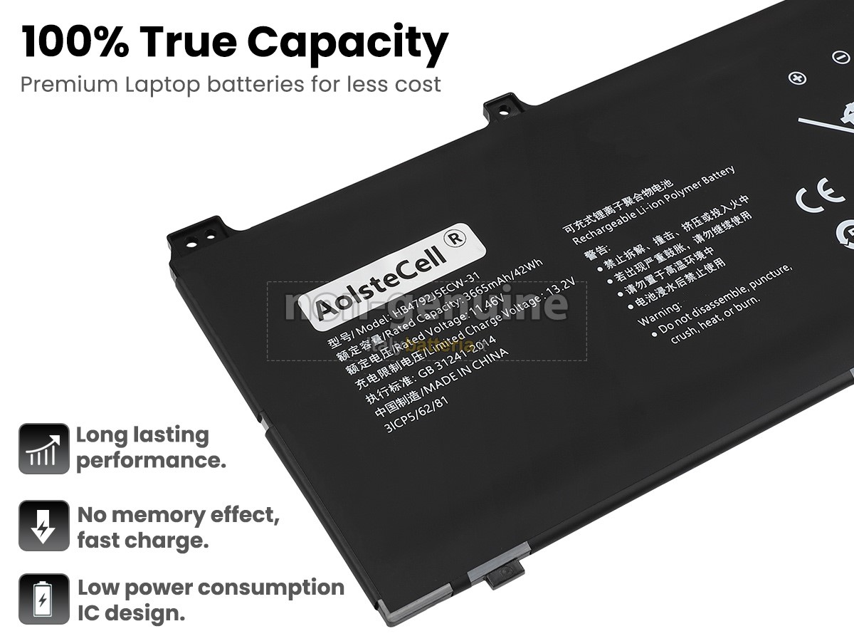 Con la copia 1: 1 in base alla dimensione originale della batteria originale, la batteria Huawei HB4792J5ECW-31 sostitutiva è compatibile al 100% con la batteria originale.