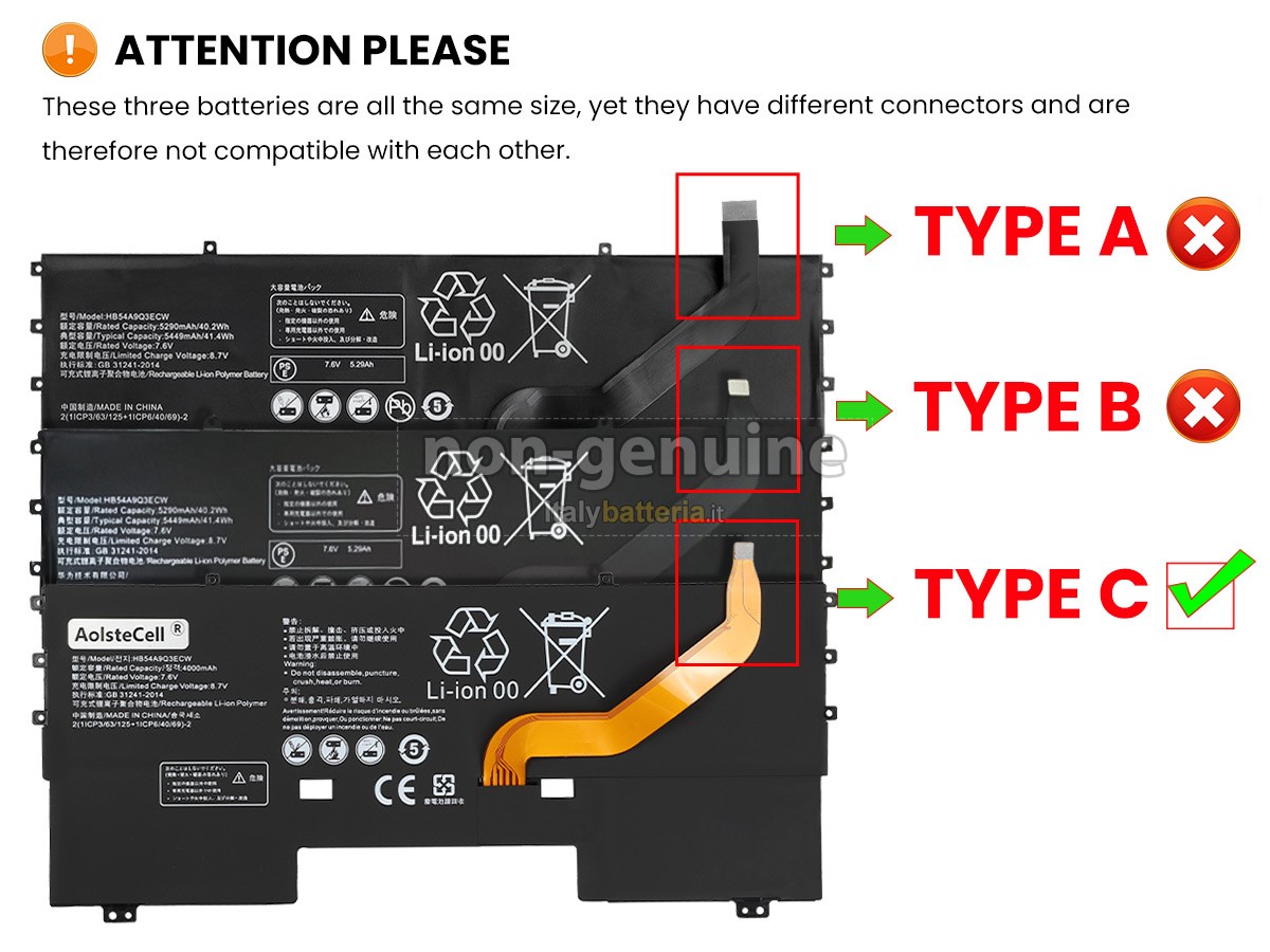 Con la copia 1: 1 in base alla dimensione originale della batteria originale, la batteria Huawei HB54A9Q3ECW sostitutiva è compatibile al 100% con la batteria originale.