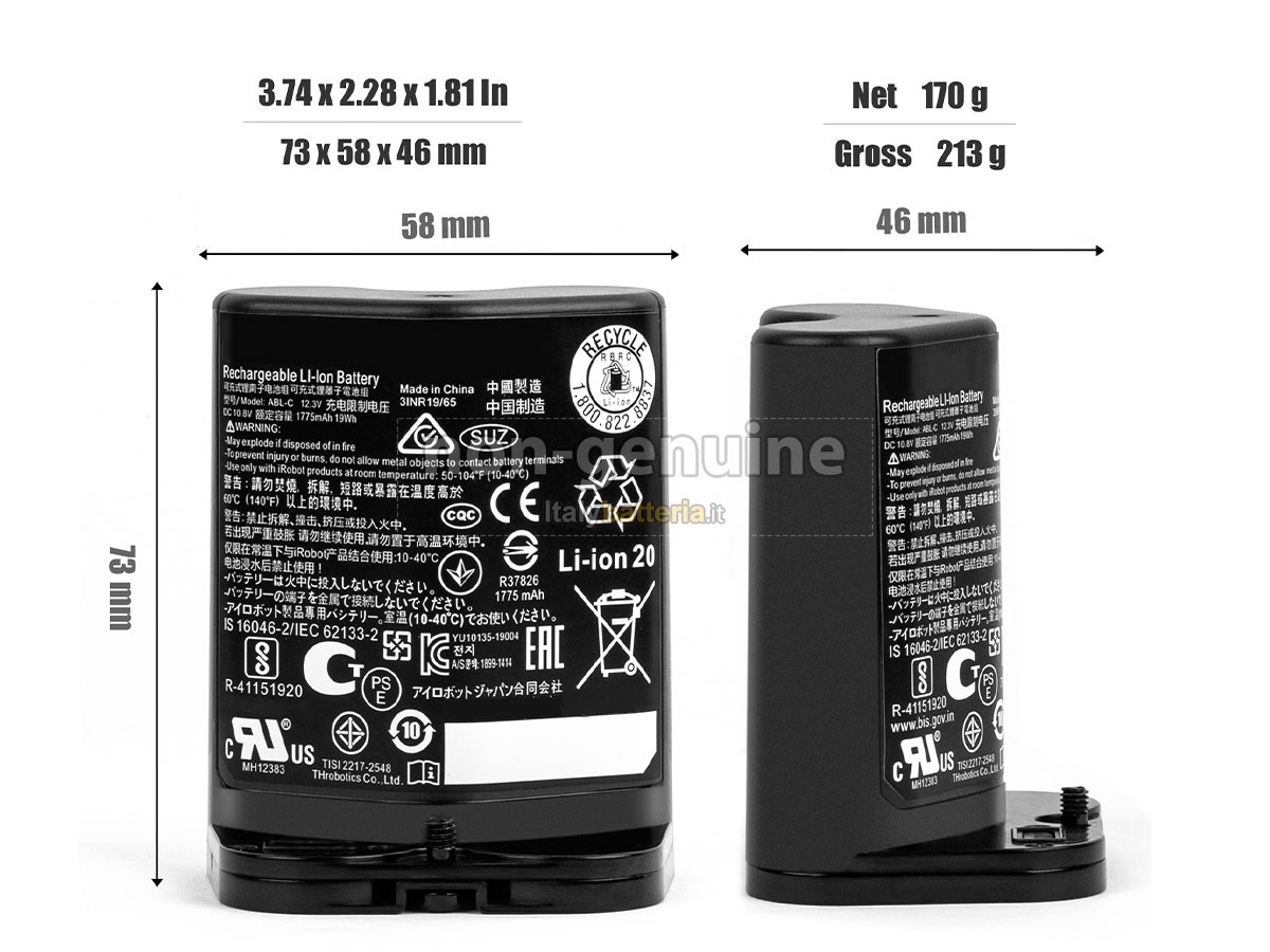 Con la copia 1: 1 in base alla dimensione originale della batteria originale, la batteria aspirapolvere Irobot M611020 sostitutiva è compatibile al 100% con la batteria originale.