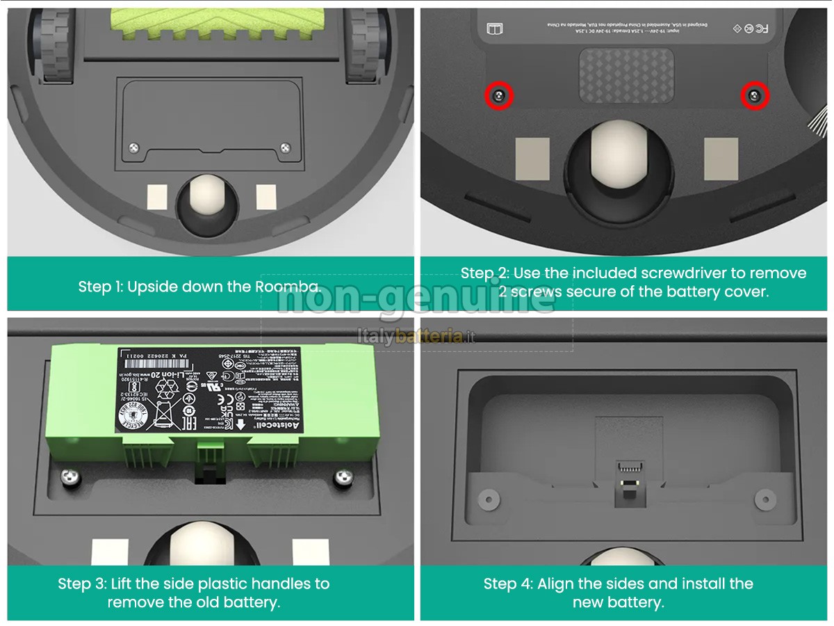 Con la copia 1: 1 in base alla dimensione originale della batteria originale, la batteria di ricambio per aspirapolvere iRobot ROOMBA E57150 sostitutiva è compatibile al 100% con la batteria originale.