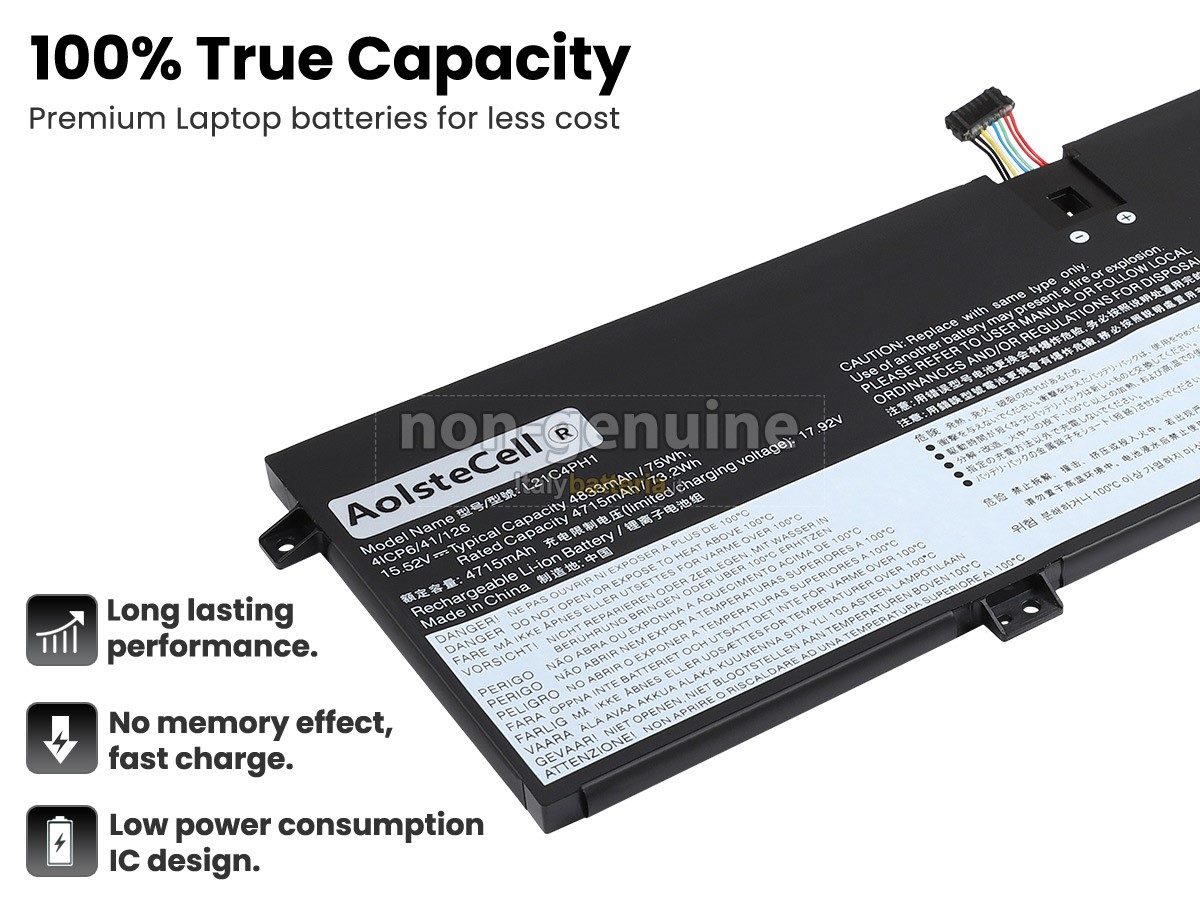 Con la copia 1: 1 in base alla dimensione originale della batteria originale, la batteria Lenovo 5B11F35906 sostitutiva è compatibile al 100% con la batteria originale.