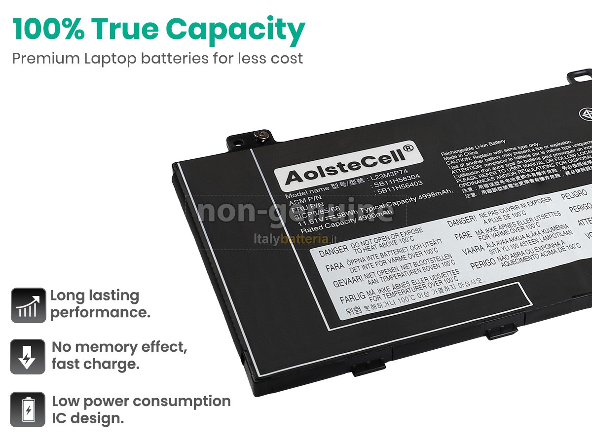 Con la copia 1: 1 in base alla dimensione originale della batteria originale, la batteria Lenovo L23M3P74 sostitutiva è compatibile al 100% con la batteria originale.