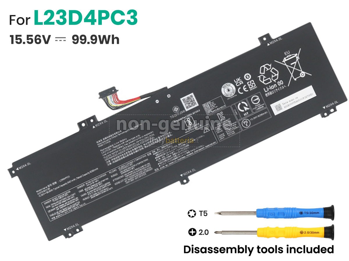 Con la copia 1: 1 in base alla dimensione originale della batteria originale, la batteria Lenovo L23M4PC3 sostitutiva è compatibile al 100% con la batteria originale.