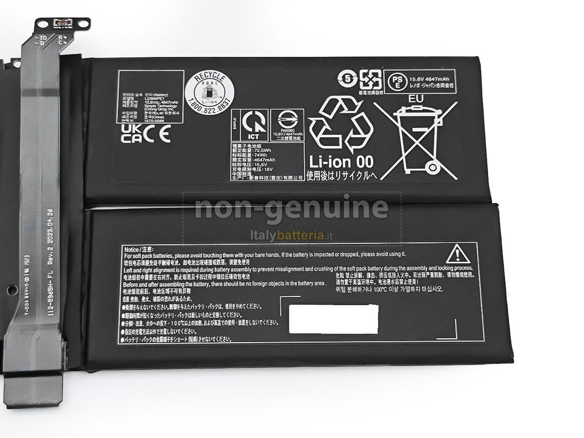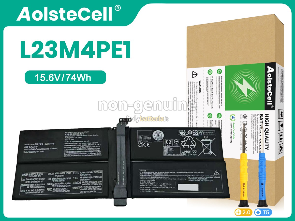 La batteria sostitutiva Lenovo L23M4PE1 è progettata in scala 1:1 rispetto alla batteria originale, assicurando il 100% di compatibilità in termini di forma, dimensioni e prestazioni.