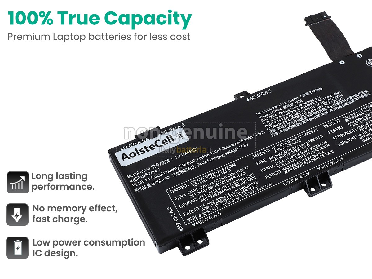 La batteria sostitutiva Lenovo LEGION 5 PRO 16IAH7H-82RF00SEHV è progettata in scala 1:1 rispetto alla batteria originale, assicurando il 100% di compatibilità in termini di forma, dimensioni e prestazioni.