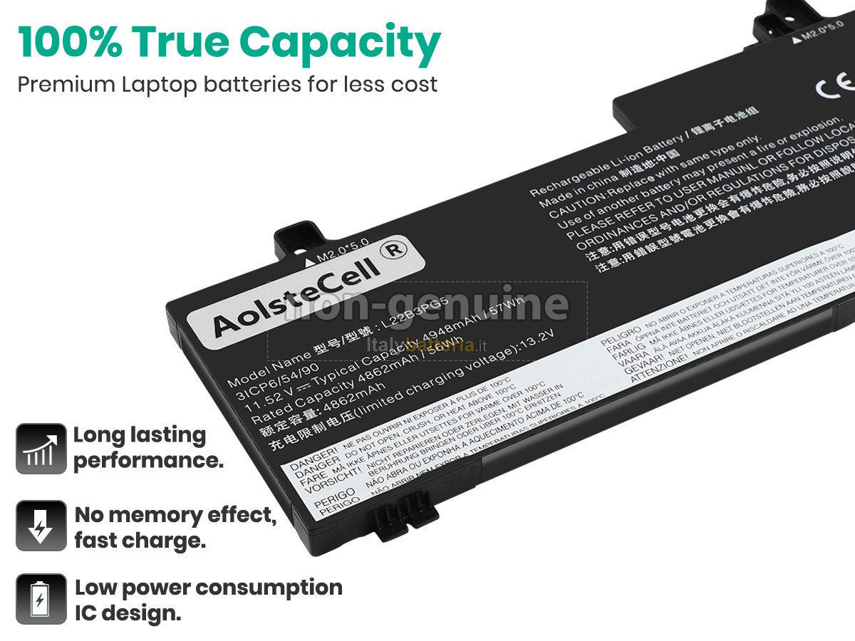La batteria sostitutiva Lenovo ThinkPad E14 GEN 5-21JS0000PG è progettata in scala 1:1 rispetto alla batteria originale, assicurando il 100% di compatibilità in termini di forma, dimensioni e prestazioni.