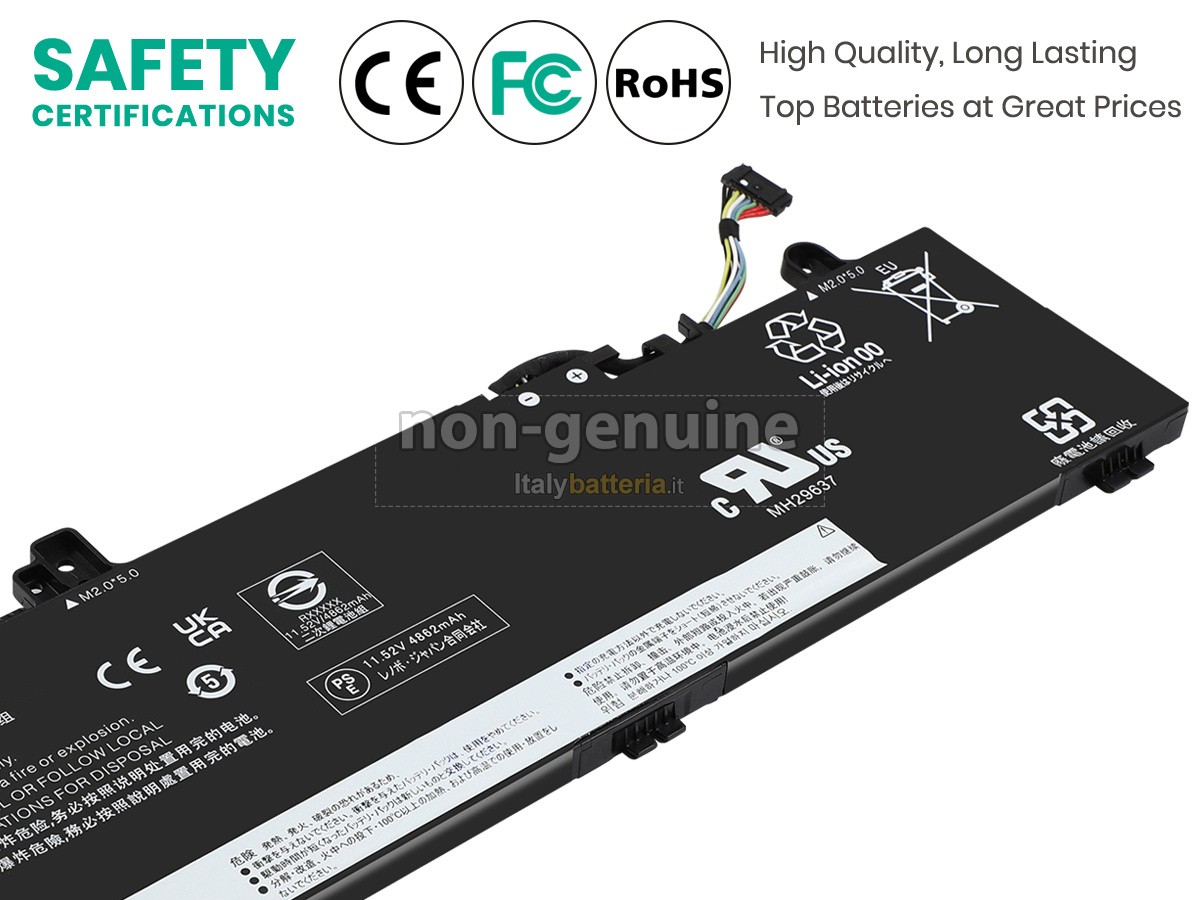 Ogni batteria per Lenovo ThinkPad E14 GEN 5-21JS0000PG viene sottoposta a severi test di sicurezza prima della spedizione, garantendo robustezza, durata e protezione da sovraccarichi, cortocircuiti e surriscaldamenti.