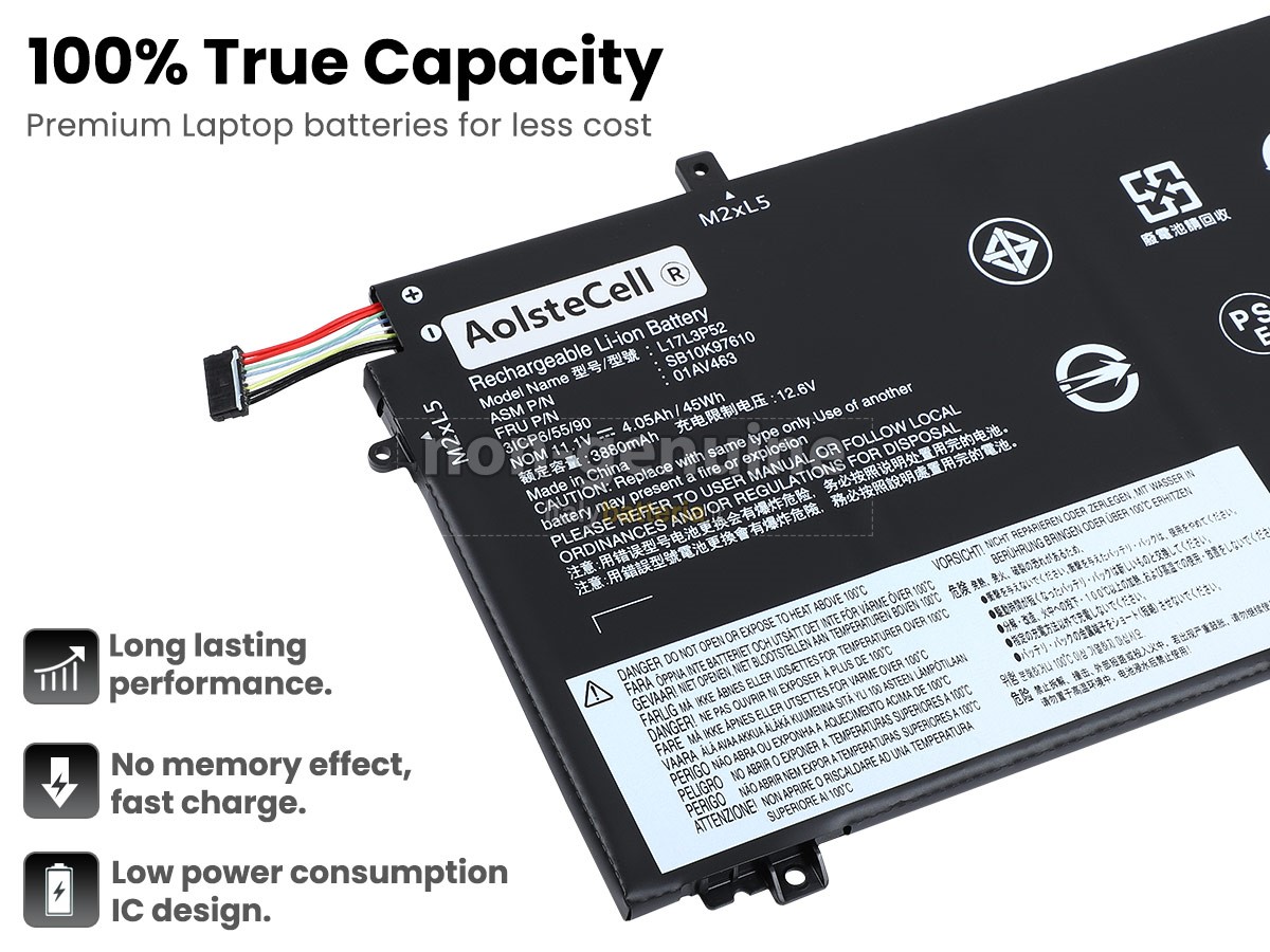 Con la copia 1: 1 in base alla dimensione originale della batteria originale, la batteria Lenovo ThinkPad L480-20LT sostitutiva è compatibile al 100% con la batteria originale.