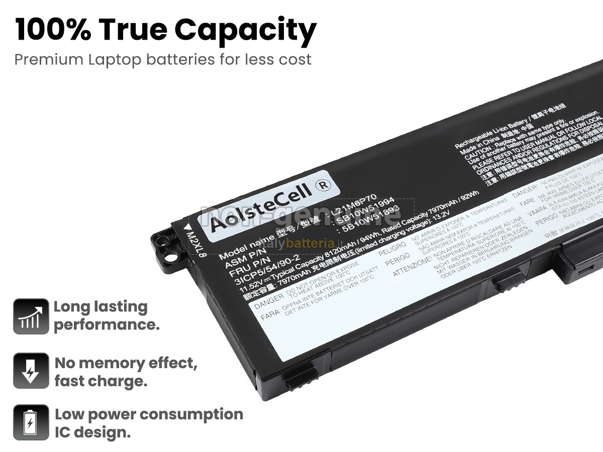 Con la copia 1: 1 in base alla dimensione originale della batteria originale, la batteria Lenovo ThinkPad P16 GEN 1-21D60041FE sostitutiva è compatibile al 100% con la batteria originale.