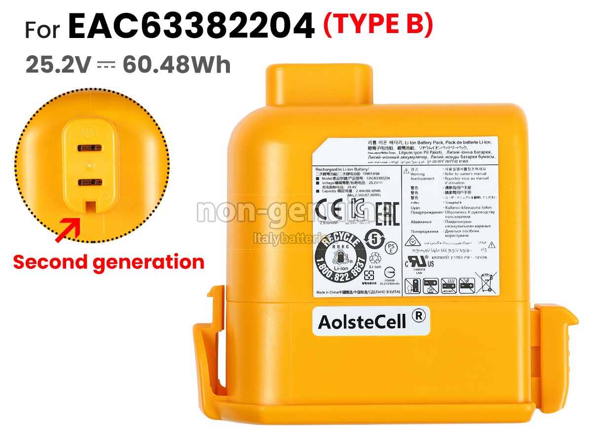 Con la copia 1: 1 in base alla dimensione originale della batteria originale, la batteria aspirapolvere LG A927KGMS sostitutiva è compatibile al 100% con la batteria originale.