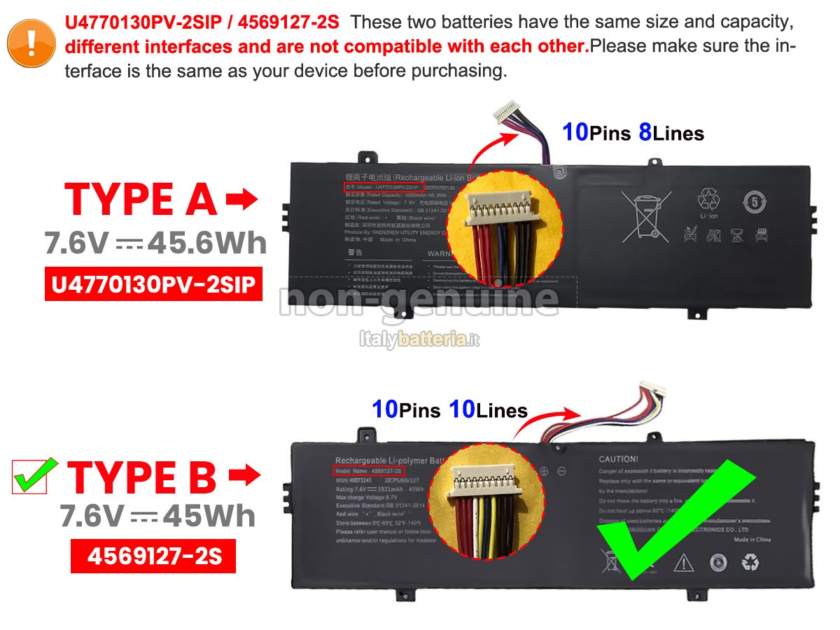 Con la copia 1: 1 in base alla dimensione originale della batteria originale, la batteria Medion 4569127-2S(2ICP5/69/127) sostitutiva è compatibile al 100% con la batteria originale.