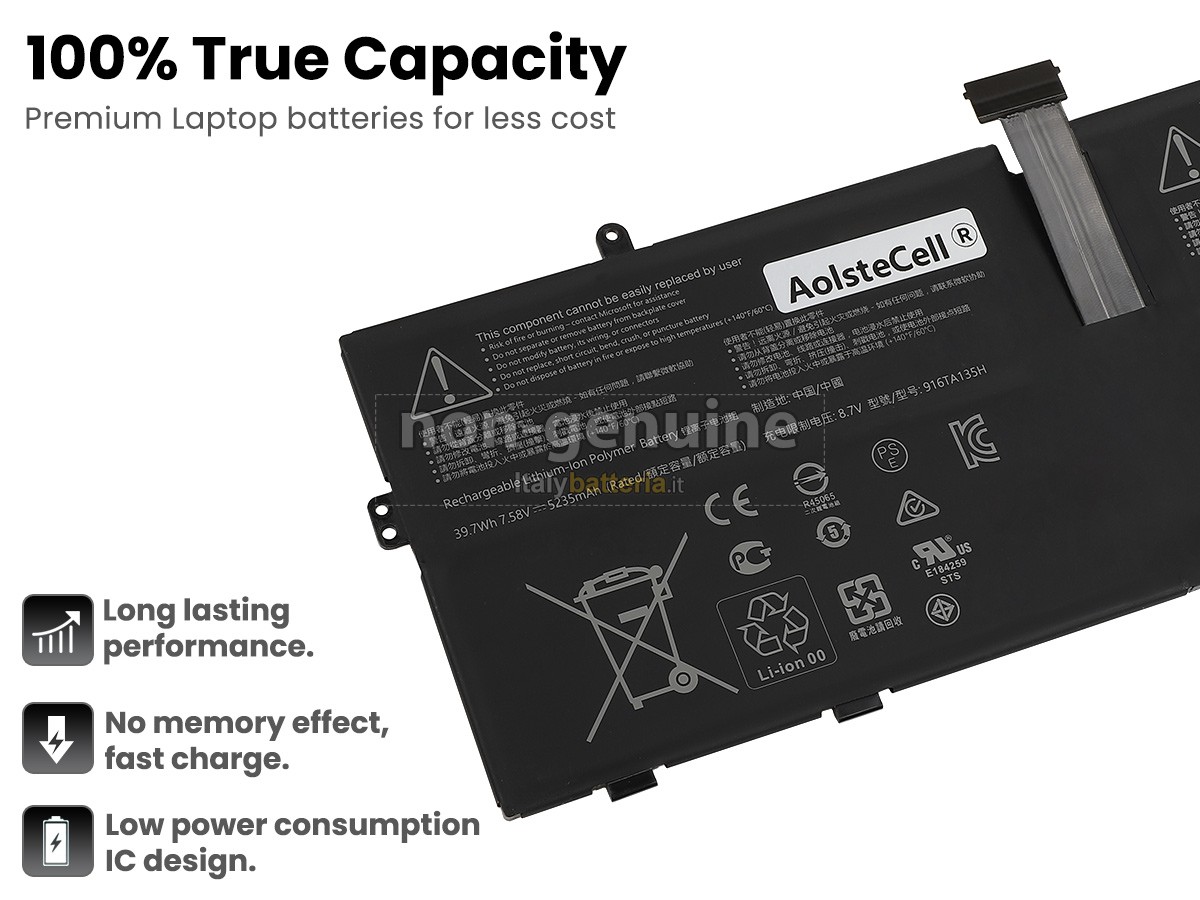 Con la copia 1: 1 in base alla dimensione originale della batteria originale, la batteria Microsoft 916TA135H sostitutiva è compatibile al 100% con la batteria originale.
