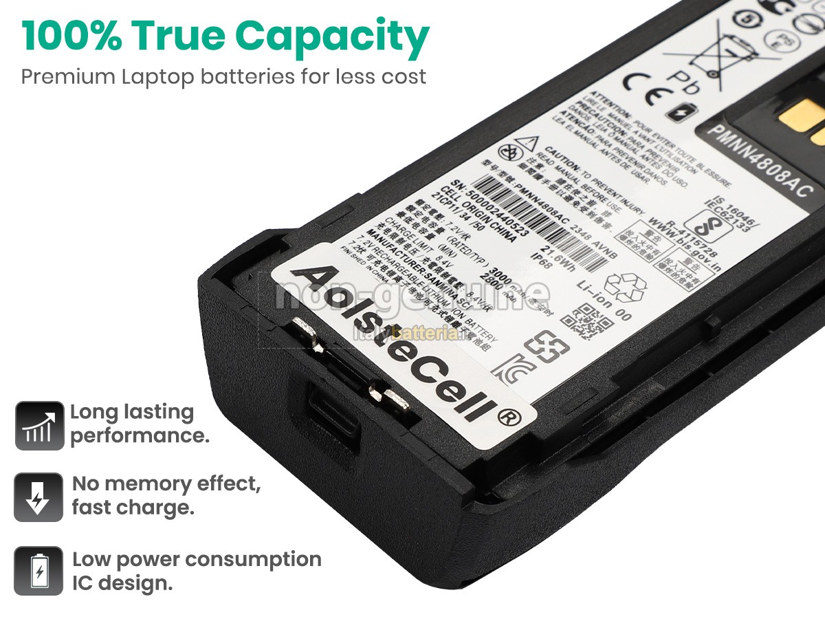 Con la copia 1: 1 in base alla dimensione originale della batteria originale, la batteria Motorola PMNN4808A sostitutiva è compatibile al 100% con la batteria originale.