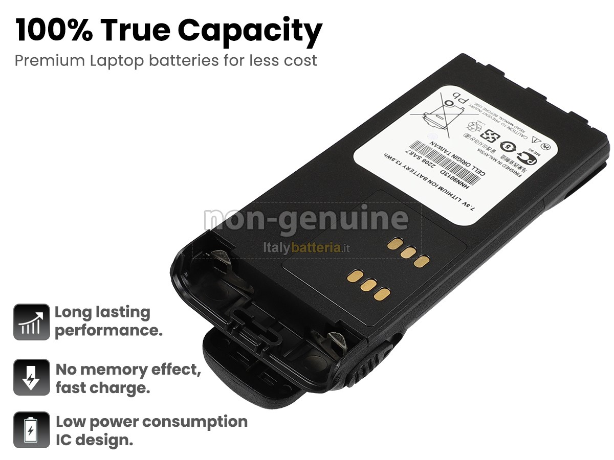 Ogni batteria Motorola PRO5750 è composta da una nuova batteria agli ioni di litio di alta qualità, che utilizza il chip di controllo intelligente e il chip di carica e scarica per migliorare la durata della batteria. Una selezione di batteria di alta qualità che rende le prestazioni più sicure e affidabili.