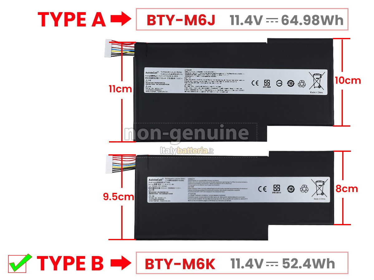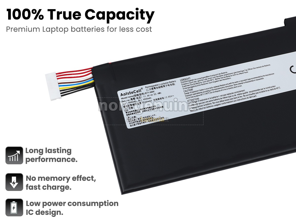 Con la copia 1: 1 in base alla dimensione originale della batteria originale, la batteria MSI BRAVO 15 A4DCR-084IT sostitutiva è compatibile al 100% con la batteria originale.