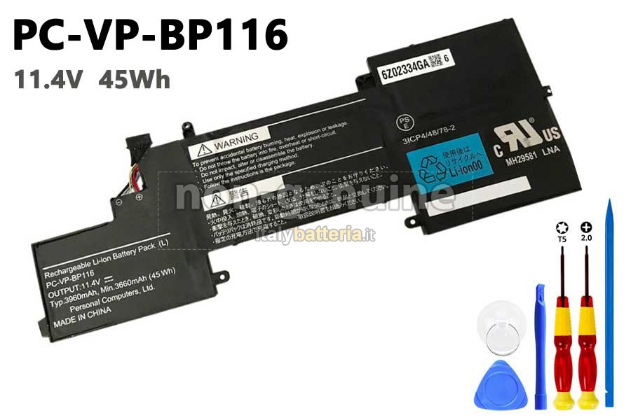 Con la copia 1: 1 in base alla dimensione originale della batteria originale, la batteria NEC PC-VP-BP116 sostitutiva è compatibile al 100% con la batteria originale.