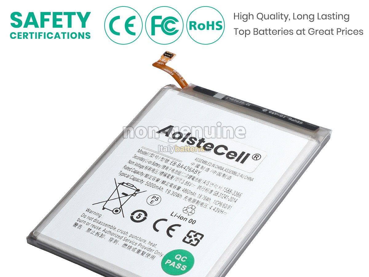 Con la copia 1: 1 in base alla dimensione originale della batteria originale, la batteria per Samsung GALAXY A42 5G sostitutiva è compatibile al 100% con la batteria originale.