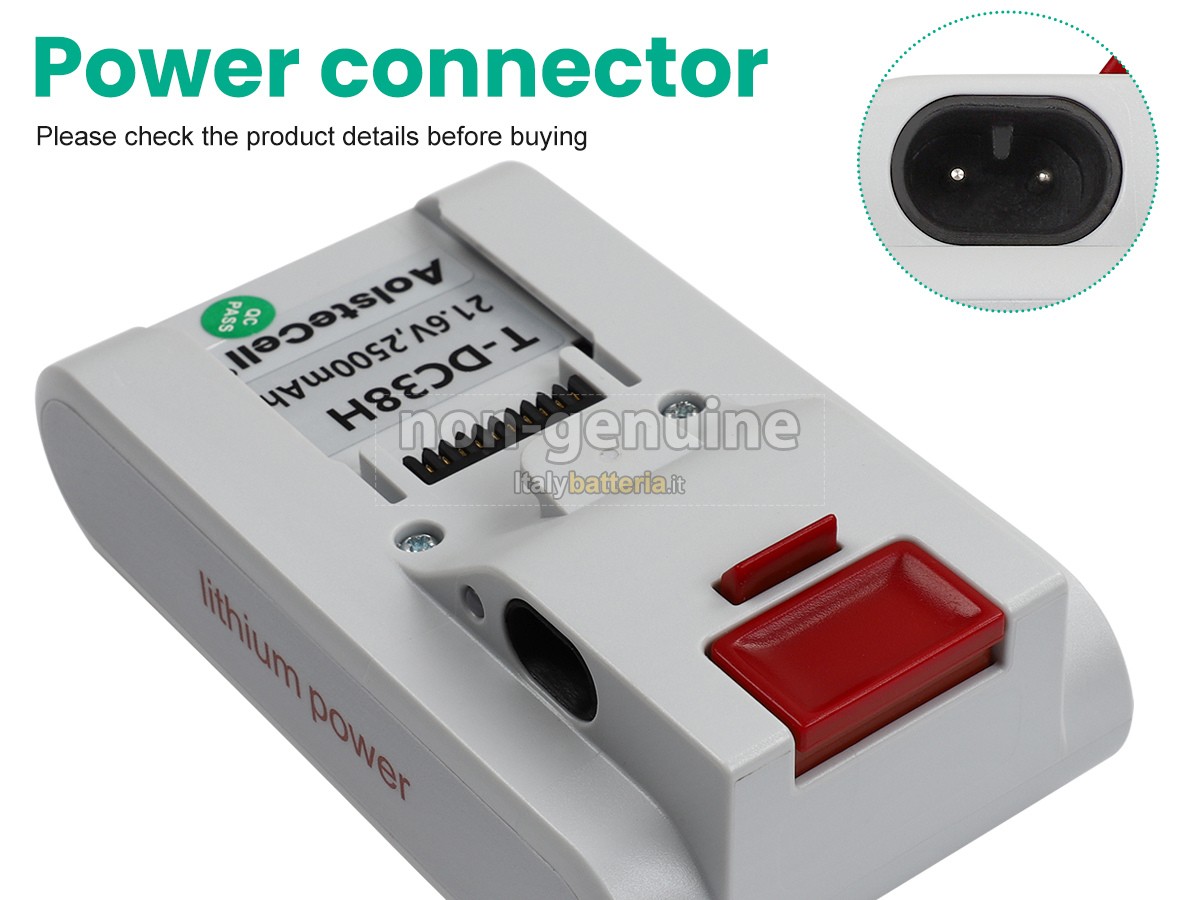 Con la copia 1: 1 in base alla dimensione originale della batteria originale, la batteria di ricambio per aspirapolvere Samsung T-DC38G sostitutiva è compatibile al 100% con la batteria originale.