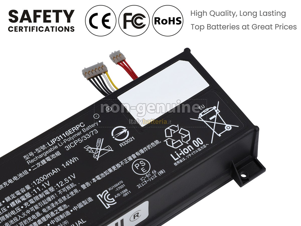 Ogni batteria Sony LIP3116ERPC è composta da una nuova batteria agli ioni di litio di alta qualità, che utilizza il chip di controllo intelligente e il chip di carica e scarica per migliorare la durata della batteria. Una selezione di batteria di alta qualità che rende le prestazioni più sicure e affidabili.