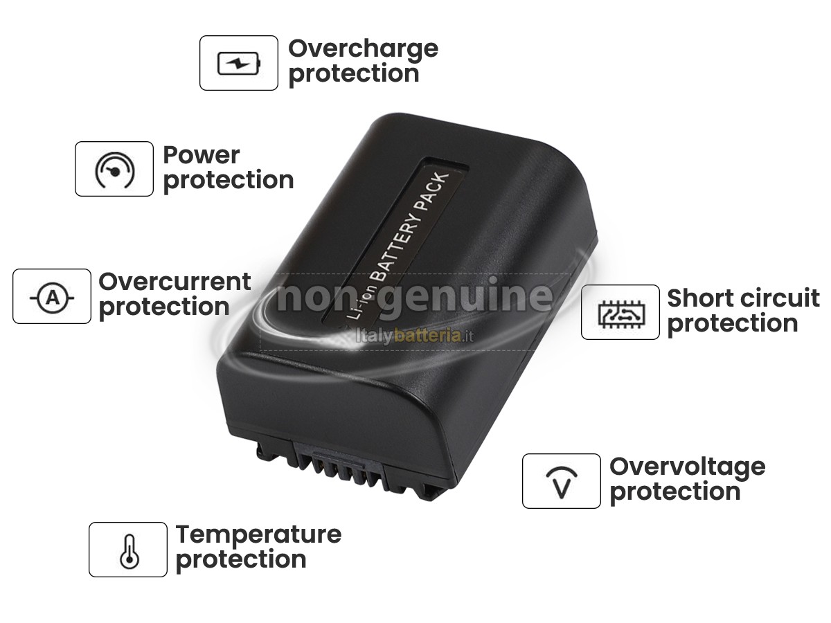 Con la copia 1: 1 in base alla dimensione originale della batteria originale, la batteria Sony NP-FV50 sostitutiva è compatibile al 100% con la batteria originale.