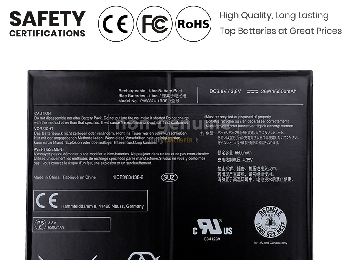 Con la copia 1: 1 in base alla dimensione originale della batteria originale, la batteria Toshiba DYNAPAD WT12PE sostitutiva è compatibile al 100% con la batteria originale.