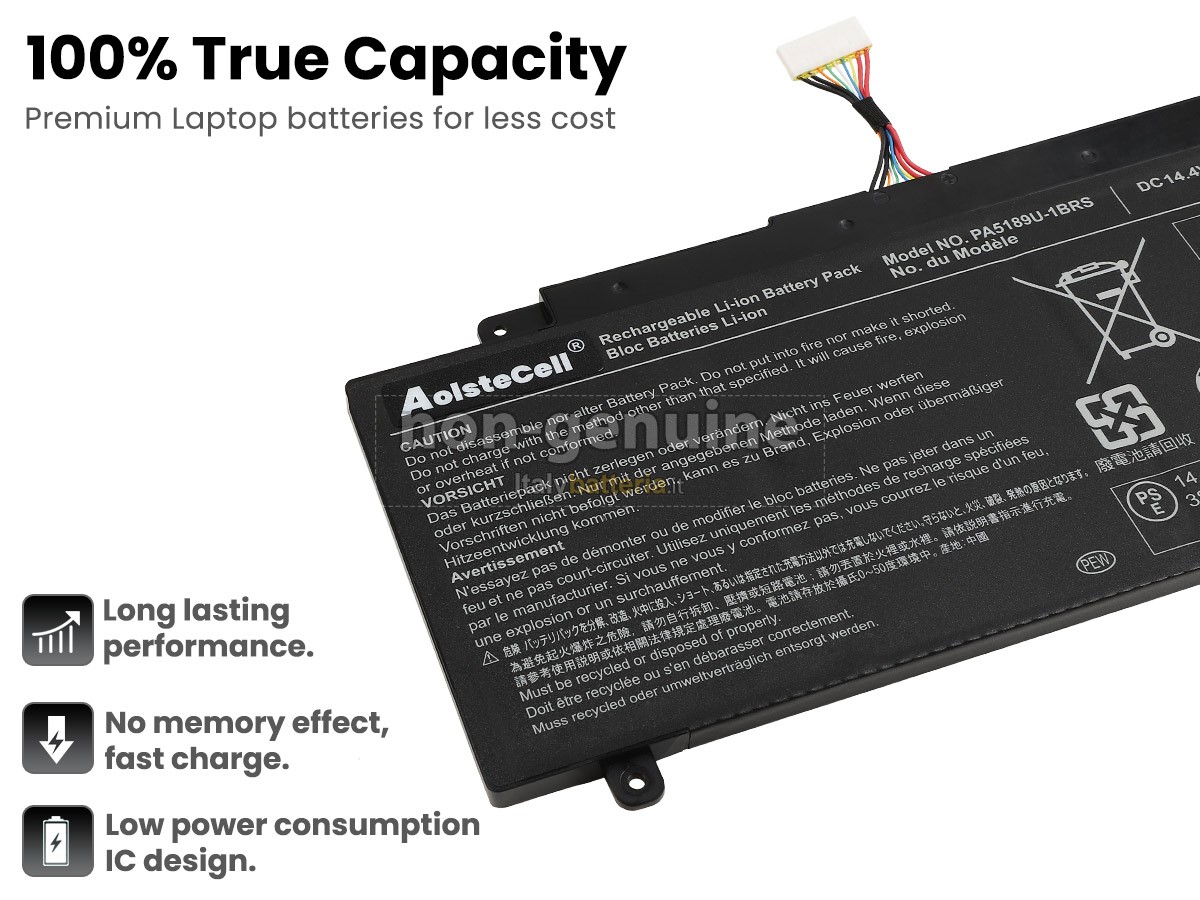 Con la copia 1: 1 in base alla dimensione originale della batteria originale, la batteria Toshiba Satellite P55W-B5260SM sostitutiva è compatibile al 100% con la batteria originale.