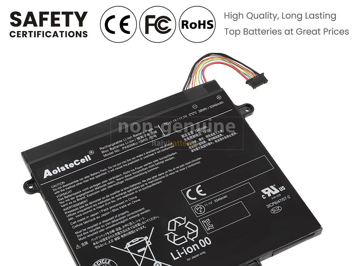 Con la copia 1: 1 in base alla dimensione originale della batteria originale, la batteria Toshiba W310-108 sostitutiva è compatibile al 100% con la batteria originale.