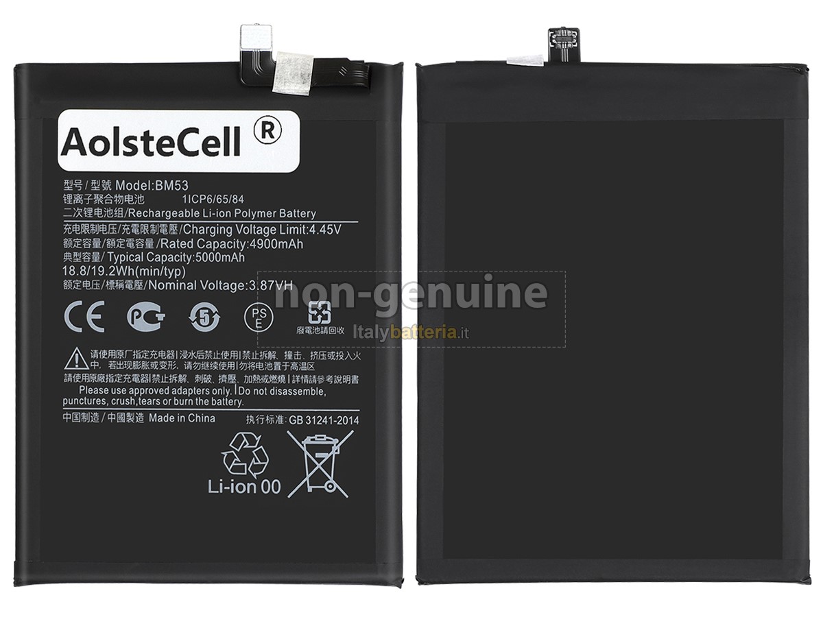 Con la copia 1: 1 in base alla dimensione originale della batteria originale, la batteria XiaoMi M2007J3SI sostitutiva è compatibile al 100% con la batteria originale.