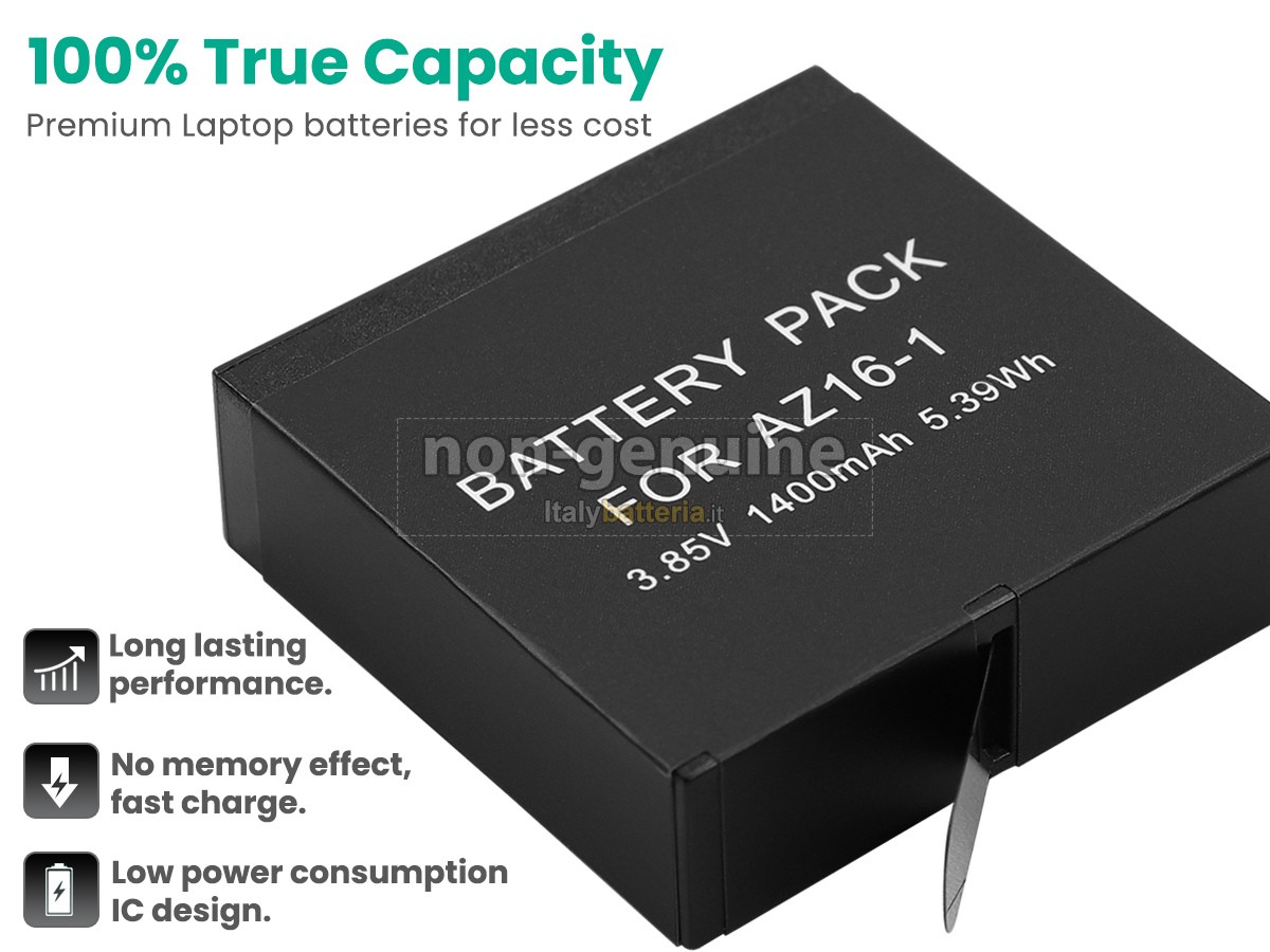Con la copia 1: 1 in base alla dimensione originale della batteria originale, la batteria Xiaomi YI AZ16-1-2 sostitutiva è compatibile al 100% con la batteria originale.