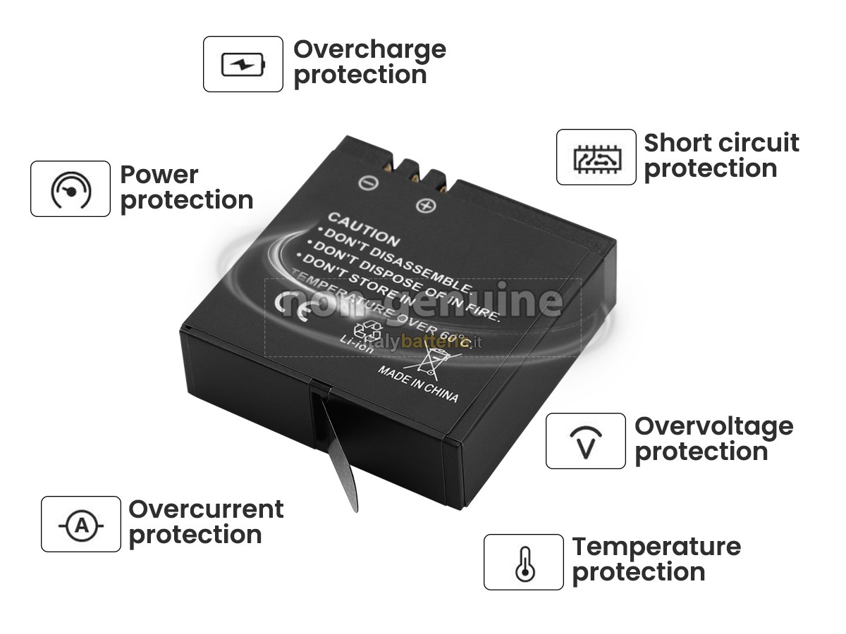 Ogni batteria Xiaomi YI AZ16-1-2 è composta da una nuova batteria agli ioni di litio di alta qualità, che utilizza il chip di controllo intelligente e il chip di carica e scarica per migliorare la durata della batteria. Una selezione di batteria di alta qualità che rende le prestazioni più sicure e affidabili.